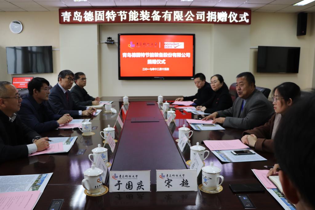 12月15日, 青岛德固特节能装备股份有限公司捐赠及科研合作签约仪式在4008会议室举行,公司党委副书记张元利、胶州市科工信局副局长陈吉柱、青岛德固特节能装备有限公司董事长魏振文、副总经理崔…