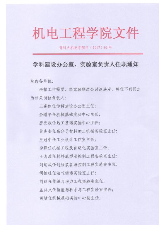 太阳成tyc7111cc团队建设办公室、实验室负责人任职通知