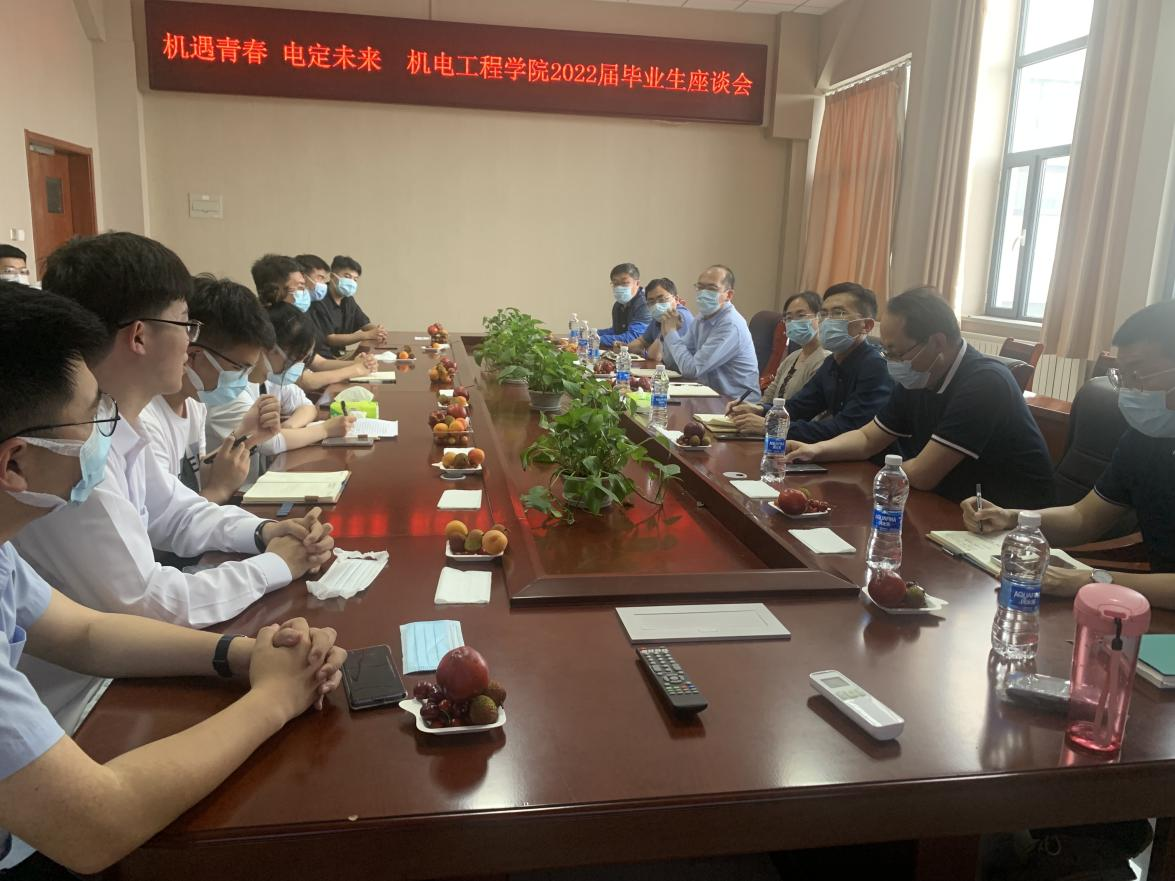 何燕经理认真听取了毕业生代表们的交流发言和意见建议,代表学院对大家关心和支持学院发展表示了肯定与感谢,并祝贺同学们圆满完成学业,顺利走向新征程。何经理对毕业生提出了三点希望:一是胸怀国家,志存高远。希望同学们能够勇担时代使命,把个人理想追求融入到党和国家的事业之中,为党、为祖国、为人民多作贡献。二是练就本领,砥砺前行。希望同学们树立“终身学习”理念,永葆学习热情,汲取前进力量,攻坚克难,努力成长为可堪大用、能担重任的栋梁之才。三是守之以德,永葆底色。希望同学们能够始终坚守人间正道,锤炼无比坚强的意志品格,历练宠辱不惊的心理素质,坚定百折不挠的进取精神。座谈会上,20余名毕业生代表纷纷敞开心扉、畅所欲言,回顾成长之路、汇报学业成果、分享收获感悟。一个个感人至深的成长故事,反映出机电学子破茧成蝶的青春轨迹,表达了对学校、学院及老师的赤子之情和深深眷恋。随后,同学们针对目前学院在教学科研、就业创业、校园文化、后勤保障和实践平台打造等方面存在的问题积极建言献策。