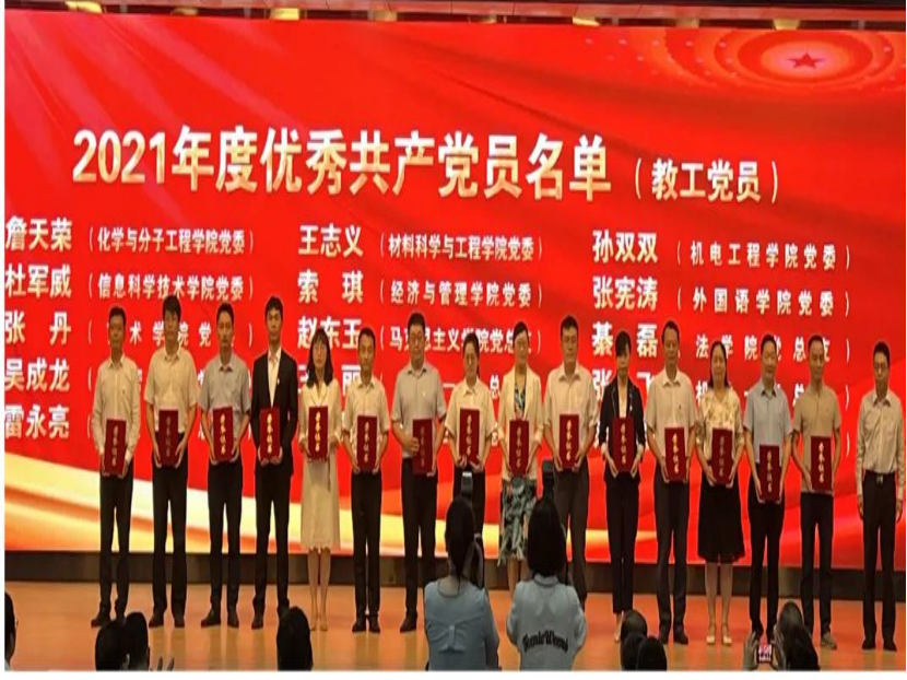 公司党委荣获2021年度思想政治工作先进集体,太阳成tyc7111cc本科生第三党支部荣获“五好”党支部,肖强荣获2021年度思想政治工作先进个人,孙双双荣获2021年度优秀共产党员(教工党员),耿宇轩荣获2021年度优秀共产党员(员工党员)。肖强、王娟娟撰写的《“四史教育”融入新时代青年爱国主义教育研究》获评一等奖;王作辉、杜康参与撰写的《新时代高校劳动教育意义及实施路径》获评一等奖。