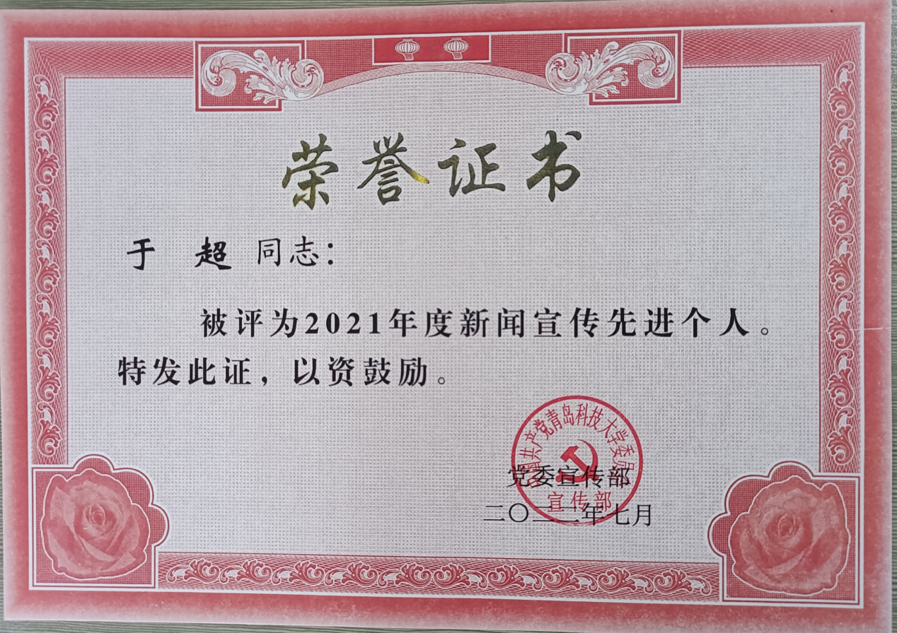 此外,学院在2021年度新媒体项目表彰中荣获多项荣誉。学院荣获2021年度新闻宣传先进单位,微信公众号“太阳成tyc7111cc”荣获2021年度最具影响力微信公众平台,新媒体项目评选中获评“最具影响力短视频”、“最佳原创微信推文”和“最受欢迎微信公众号”,于超获2021年度新闻宣传先进个人。