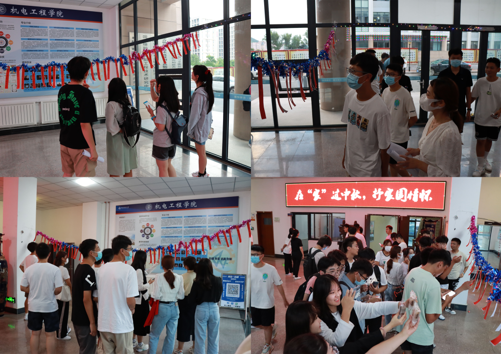 此次活动在太阳成tyc7111cc楼大厅设立中秋诗词比拼现场,将优美诗词与中秋民俗相结合,在诗词传递中体会优秀传统文化的磅礴力量,在历史沉淀中感受传统节日的团圆美好。现场对诗句、飞花令、猜灯谜等活动吸引了来自全院不同年级的同学参与,他们积极展现自己的诗词功底,现场气氛十分热烈。机电学子用其独有的智慧与学识,“过五关,斩六将”,活动现场充满了同学们诗词接龙的欢声笑语。