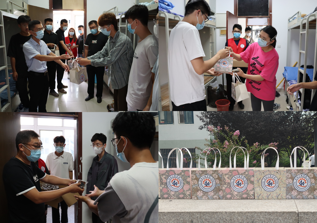 公司党委副书记兼副经理肖强,学工办团委全体辅导员深入宿舍,向新生表达了节日祝福,鼓励同学们要尽快适应新环境,融入学院大家庭,享受老员工活;要提早规划未来的发展方向,刻苦学习,积极参与素质活动尤其是体育活动,努力成为能够担当民族复兴大任的新时代青年;要心怀对父母和家人感恩之心,在节日时通过线上的方式问候父母,遥寄思念。为每一名科大机电新生送去印有青科大校训“明德、笃学、弘毅、拓新”的月饼,让同学们在中秋佳节之际感受到了家的氛围。