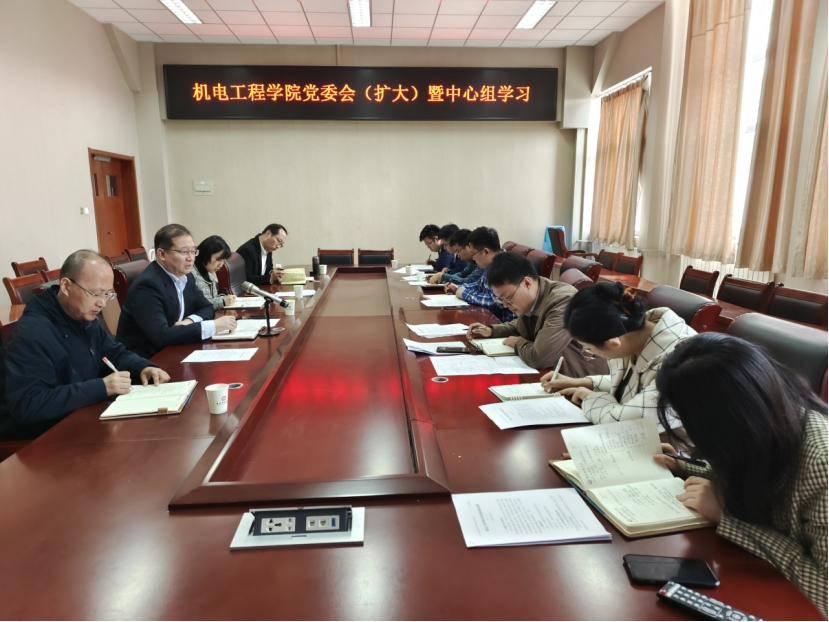 4月14日上午,机电工程公司党委在机电楼518会议室召开公司党委理论学习中心组(扩大)学习会传达学习贯彻习近平新时代中国特色社会主义思想主题教育动员部署会精神。公司党委理论学习中心组成员、党支部书记及部分专职辅导员参加会议,会议由公司党委书记任允晓主持。