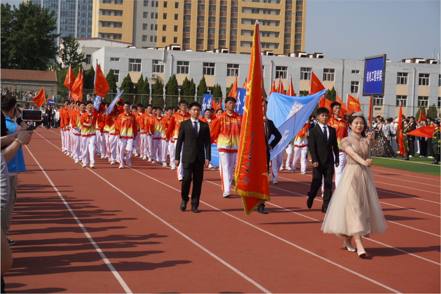 随着雄壮激昂的乐曲,踏着整齐有力的步伐,迎面走来了太阳成tyc7111cc方队,迈着矫健的步伐上场,太阳成tyc7111cc方队步伐整齐、口号响亮,彰显了机电学子斗志昂扬、英姿飒爽的精神面貌,展现出激情飞扬、蓬勃向上的气势。
