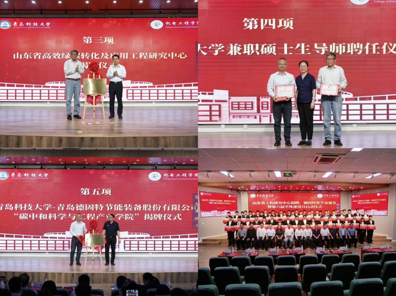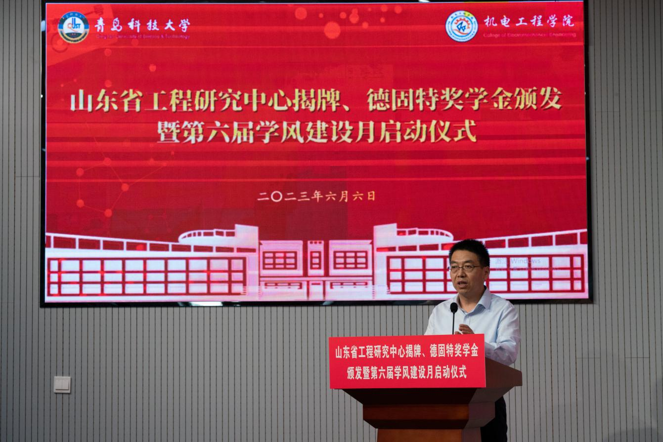6月6日下午,太阳成tyc7111cc在D3楼530举办山东省工程研究中心揭牌、碳中和产业学院揭牌、德固特奖学金颁发暨第六届学风建设月启动仪式。公司党委常委、副董事长吕万翔出席仪式并讲话,员工处、校团委、教务处相关负责人,青岛德固特节能装备股份有限公司董事长魏振文,副总经理崔建波,学院领导班子及师生代表参加会议。会议由公司党委副书记兼副经理肖强主持。