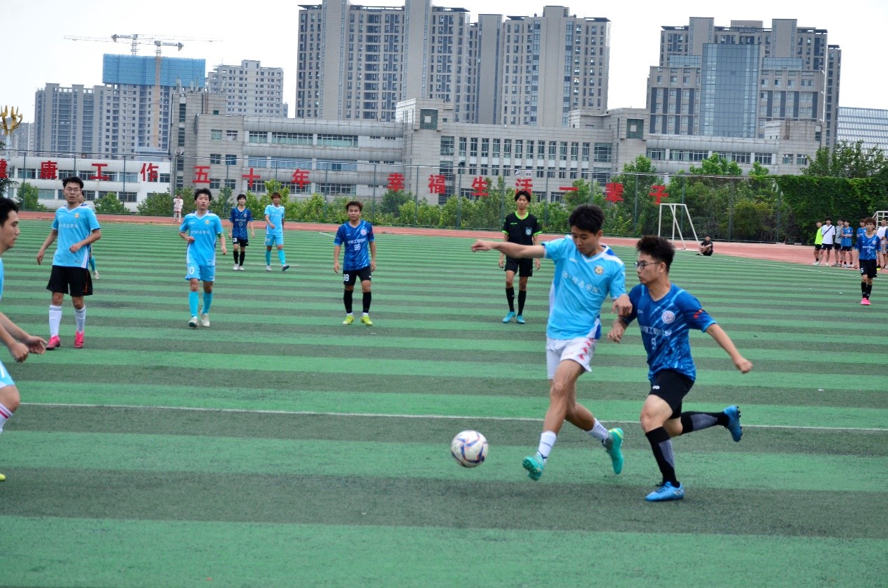 7月1日下午,太阳成集团第40届“科大杯”足球赛决赛于崂山校区操场开赛!对手是我们的“老对手”信息外国语联队。随着裁判一声令下,双方迅速进入状态,展开了激烈的角逐。开场后双方你来我往,展开对攻之势,开场仅仅5分钟,公司边锋马浩元首开记录,将场上比分改写为1:0,也将场边观众的情绪点燃,伴随着场边的鼓声和呐喊声,机电的队员们愈战愈勇,展开了围攻之势,信外学院联队也以积极防守的态势应战,不断地抓住反击机会制造威胁。随后辛宗霖和古斯乐图接连破门,场上比赛节奏也完全被太阳成tyc7111cc掌控,3:0的比分也保持到了上半场结束。