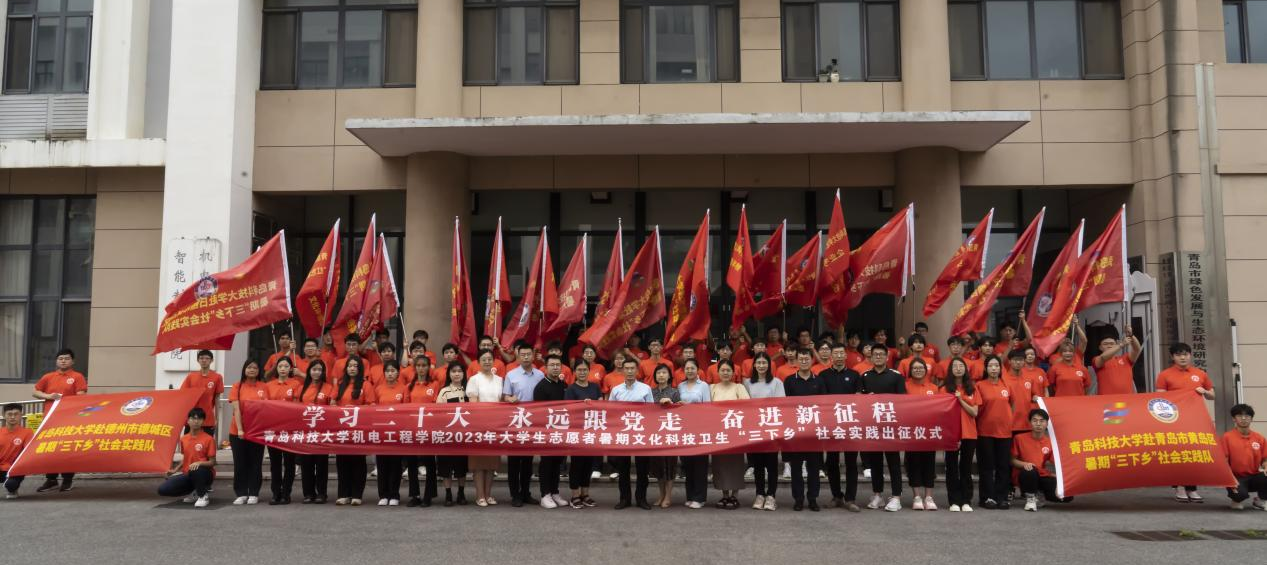 为深入学习宣传贯彻党的二十大精神,贯彻落实习近平新时代中国特色社会主义思想和习近平总书记关于青年工作的重要论述,进一步推动社会实践与时俱进、开拓创新、再创佳绩,引领广大青年脚踏实地、志存高远,在社会课堂中“受教育、长才干、做贡献”,在校院两级党委领导下、校团委指导下,7月11日,2023年暑期老员工志愿者科技、文化、卫生三下乡社会实践出征仪式在机电楼530隆重举行,公司党委副书记兼副经理肖强、团委书记兼学工办主任王娟娟、实践团队指导教师代表和员工代表参与仪式。
