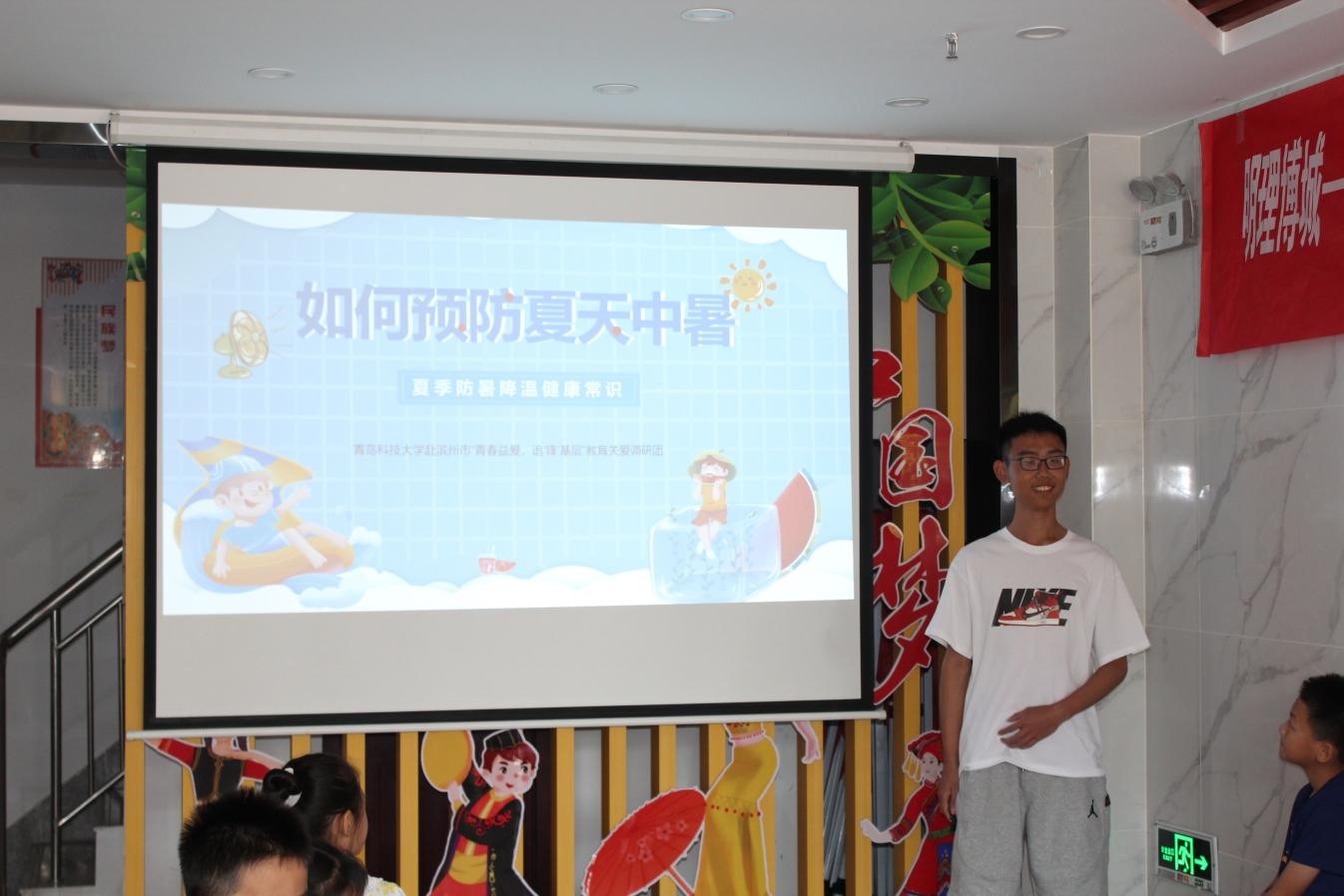 调研团成员泥嘉芮为孩子们带来“预防中暑”专题课堂。泥老师通过图文并茂的方式向员工们展示了中暑的真实案例,并解释了热应激对人体的影响。这样一方面可以引起员工的关注,增加他们对中暑的认识,另一方面也能让他们更易于理解预防中暑的重要性。她重点讲解了中暑的预防方法。向员工们详细解释了防暑要点,包括避免长时间暴露在高温环境下,注意室内外温差,合理服用清凉饮品,适时休息等。我使用实际案例和图片来说明这些预防措施的实施方法,并强调了预防中暑的必要性和可行性。