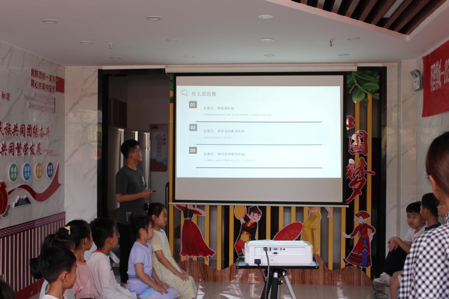 调研团成员张文佳为孩子们带来“用眼健康科普”专题课堂。她重点讲解了常见的眼部问题和预防方法。她向员工们介绍了近视、眼疲劳、干眼症等常见问题,并提供了预防和缓解这些问题的方法。她使用实际案例和图片来说明这些方法的实施步骤,并强调了正确用眼和保护眼睛的重要性。她还组织了一些实践活动,让员工们进行眼保健操和眼部按摩的练习。通过这些活动,员工们可以亲身体验到眼部按摩的舒适感,并学会一些简单的眼保健操动作。这样一方面可以缓解眼部疲劳,另一方面也能让员工们更加深入地理解眼保健的重要性。