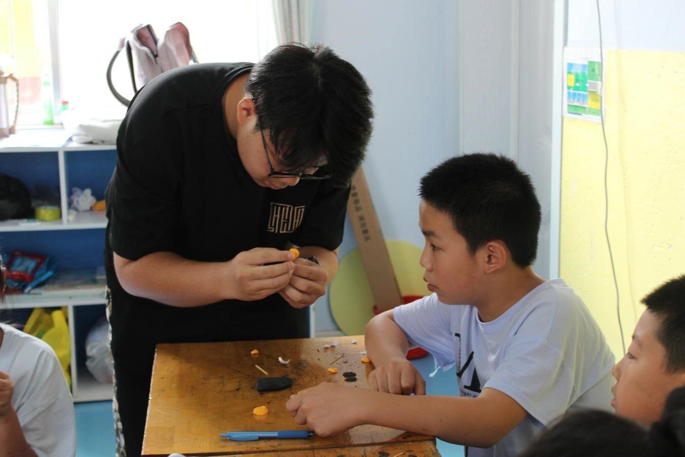 调研团成员刘满仓为孩子们带来“手工制作”专题课堂。刘老师传授员工各种手工技巧和培养他们的创造力。通过讲授手工课,他帮助员工们发展了他们的手工能力和艺术品味,同时也增强了他们的想象力和团队合作精神。