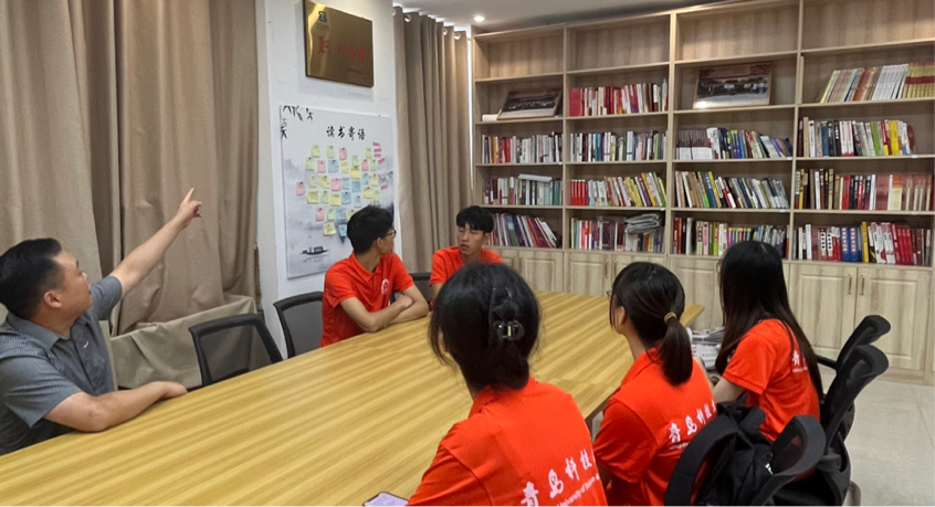 团委书记邀请调研团成员一同进入本企业特色文化之地“员工书房”,解答调研团成员提出的问题。团队更深入地了解了贵州辣椒产业的现状、贵州发展辣椒产业的优势及前景、辣椒城的市场营销渠道及产业链发展、辣椒城的发展对当地农民工的影响、企业对乡村振兴的推动,还有贵州辣椒产业面临的问题,及辣椒城对老员工返乡就业的看法和提供的机会。