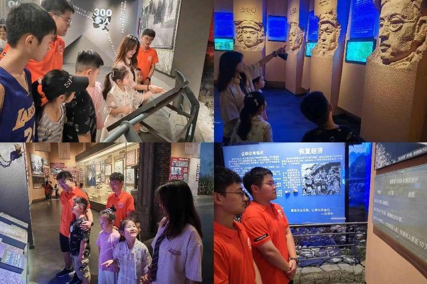 学习二十大,永远跟党走,奋进新征程。为增强当代青年儿童的爱国意识与社会责任感,弘扬爱国精神,7月27日下午,调研团抵达单县红色湖西教育基地,与实践中心儿童一同参观了红色纪念馆。调研团成员带领孩子们参观了红色革命展馆,团队讲解员讲述了党的发展历程与可歌可泣的英雄故事,孩子们庄重肃穆,安静聆听,参观结束后,孩子们纷纷表示要学习党的奋斗精神,为祖国发展贡献青春力量。调研团牢记争做中国特色社会主义事业建设者和接班人的根本任务,高举中国特色社会主义伟大旗帜,全面贯彻习近平新时代中国特色社会主义思想,弘扬伟大建党精神,努力践行“请党放心,强国有我”的庄严承诺。