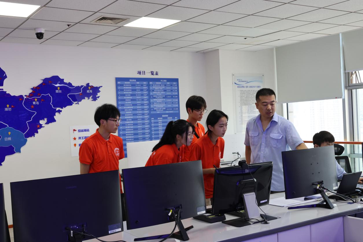 随后,在工作人员的带领下,团队成员们了解到华电山东发电有限公司新能源集控中心是山东省首批实现调度权转移的综合智慧调度中心,开创了新能源与大数据融合发展智慧运维新时代。团队成员随工作人员步行前往集控中心参观,通过华电集控中心大屏幕观察风速、发电量、设备运行状态等实时数据。