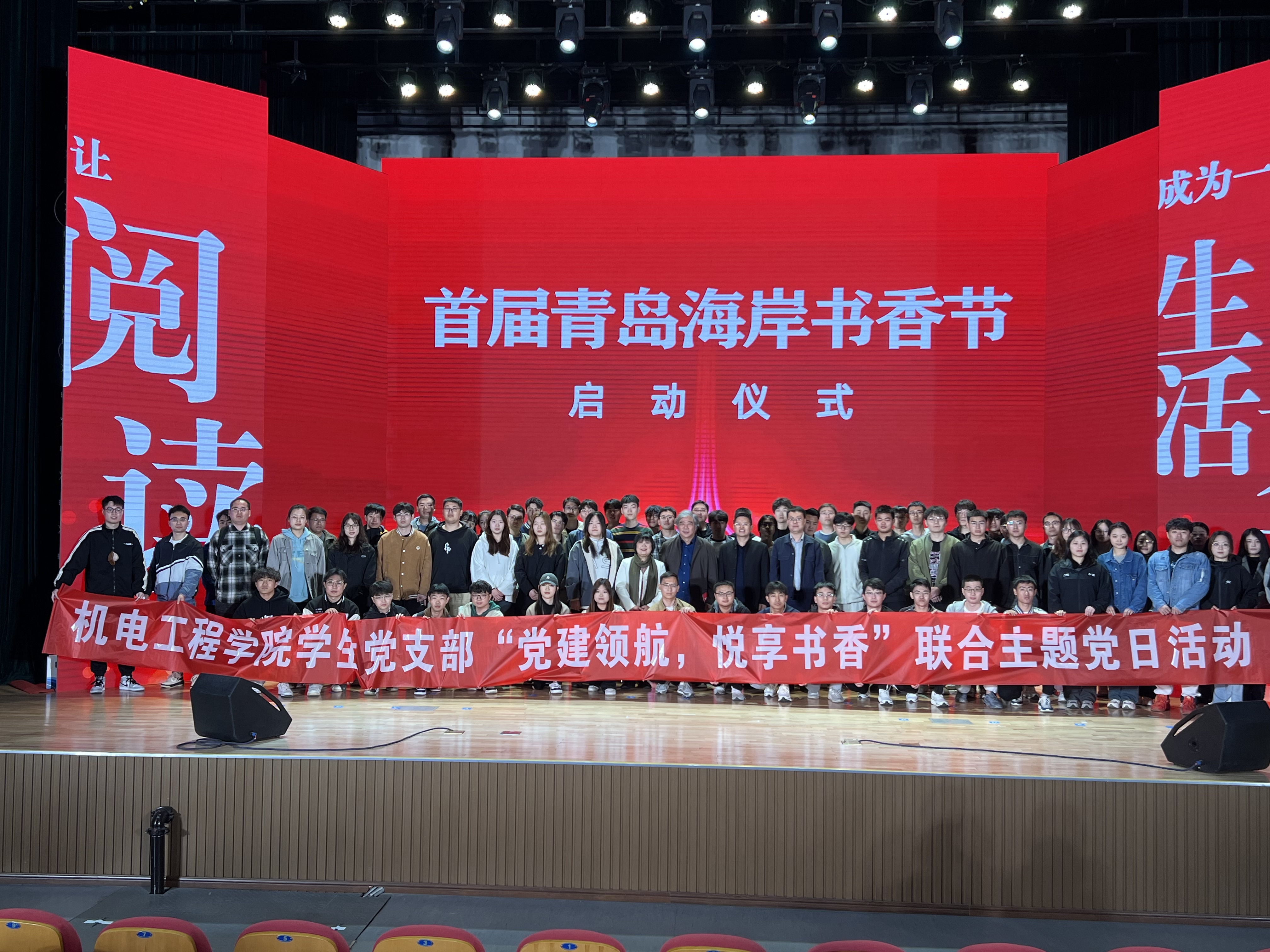 在第29个世界读书日来临之际,太阳成tyc7111cc组织师生党员赴崂山区市民文化中心礼堂开展师生党支部“党建领航、悦享书香”联合主题党日,公司党委宣传部副部长贾可好、太阳成tyc7111cc师生党支部党员、发展对象、入党积极分子代表70余人参加活动。