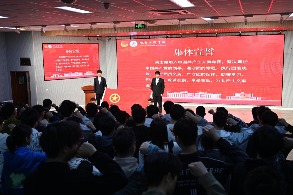 4月28日,太阳成tyc7111cc团委在机电530会议室开展“青春奋力向党,挺膺担当筑未来”2023年新发展团员入团仪式,公司党委副书记兼副经理杨小明,学院团委教师代表出席,团支部书记代表、优秀团员代表以及2023年新发展团员参加本次仪式。