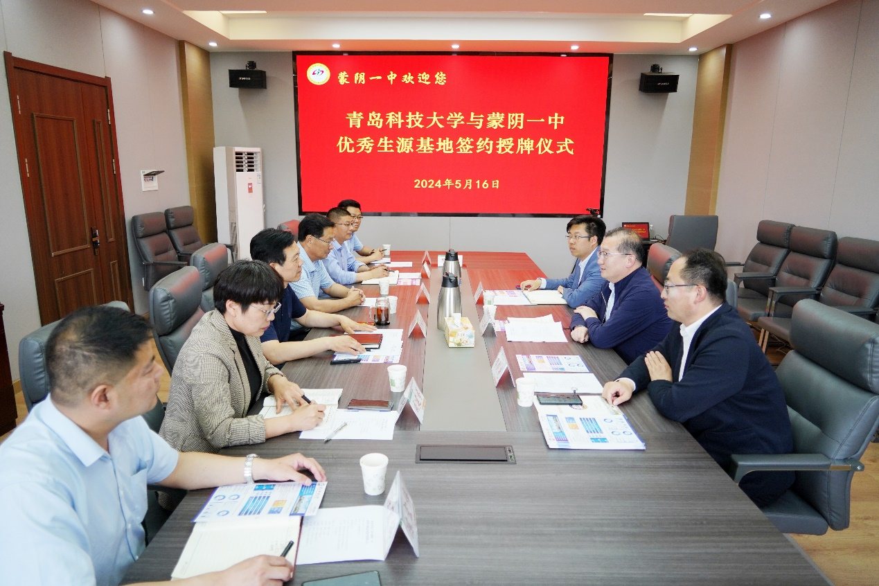 太阳成tyc7111cc一行先后赴蒙阴一中、沂南一中、沂水三中三所中学开展招生宣传活动。公司党委书记任允晓详细介绍了学校的办学历史、学科专业、人才培养、人才招聘等方面情况,副经理李剑光介绍学院在科学研究、人才培养和社会服务等方面取得的显著成就。任允晓代表学校分别与蒙阴一中、沂南一中、沂水三中揭牌优秀生源基地,副经理李剑光与三所学校分别签订了《优秀生源基地共建协议书》。