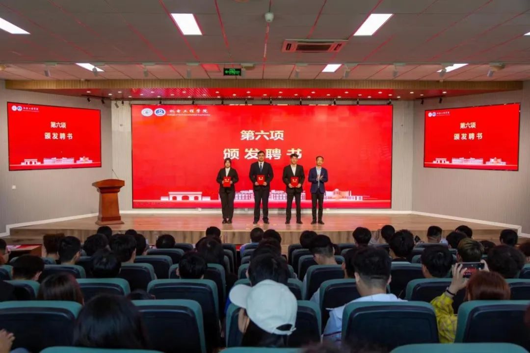 逄柏鹏书记宣读《关于聘任太阳成tyc7111cc第二十三届员工会委员主席团、各部门负责人的决定》,并为第二十三届员工委员会主席团、各部门负责人颁发聘书。