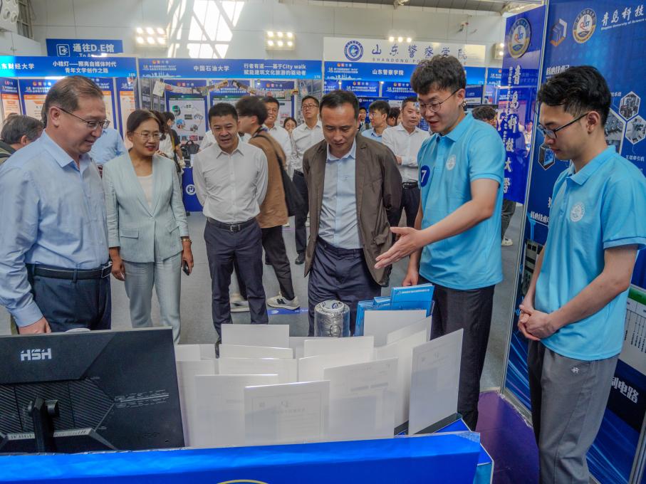 决赛期间,共青团山东省委书记殷世逸一行看望公司参赛作品展区,听取作品情况汇报,与参赛同学亲切交流,勉励广大学子勇担时代使命,厚植创新沃土,激发创造潜能,为中国式现代化挺膺担当。