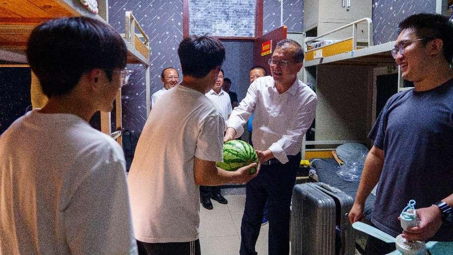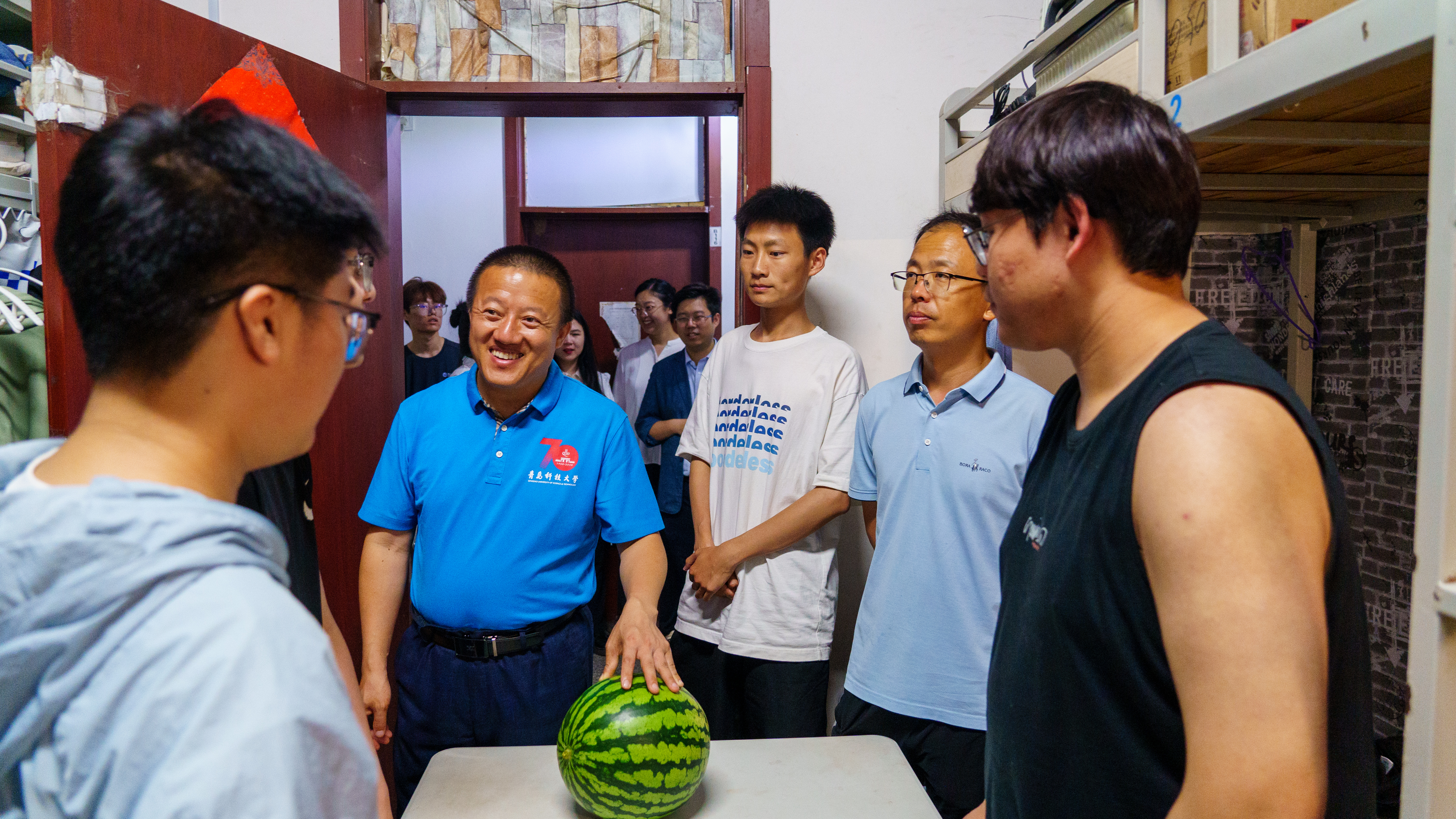 正值炎炎夏日,一年一度的毕业季悄然到来。6月21日晚,公司党委书记任允晓、党委副书记兼副经理杨小明、副经理杨化林、学工办主任逄柏鹏及全体辅导员走访毕业生宿舍,为即将离校的毕业生送上清甜的西瓜,带去温暖与祝福。