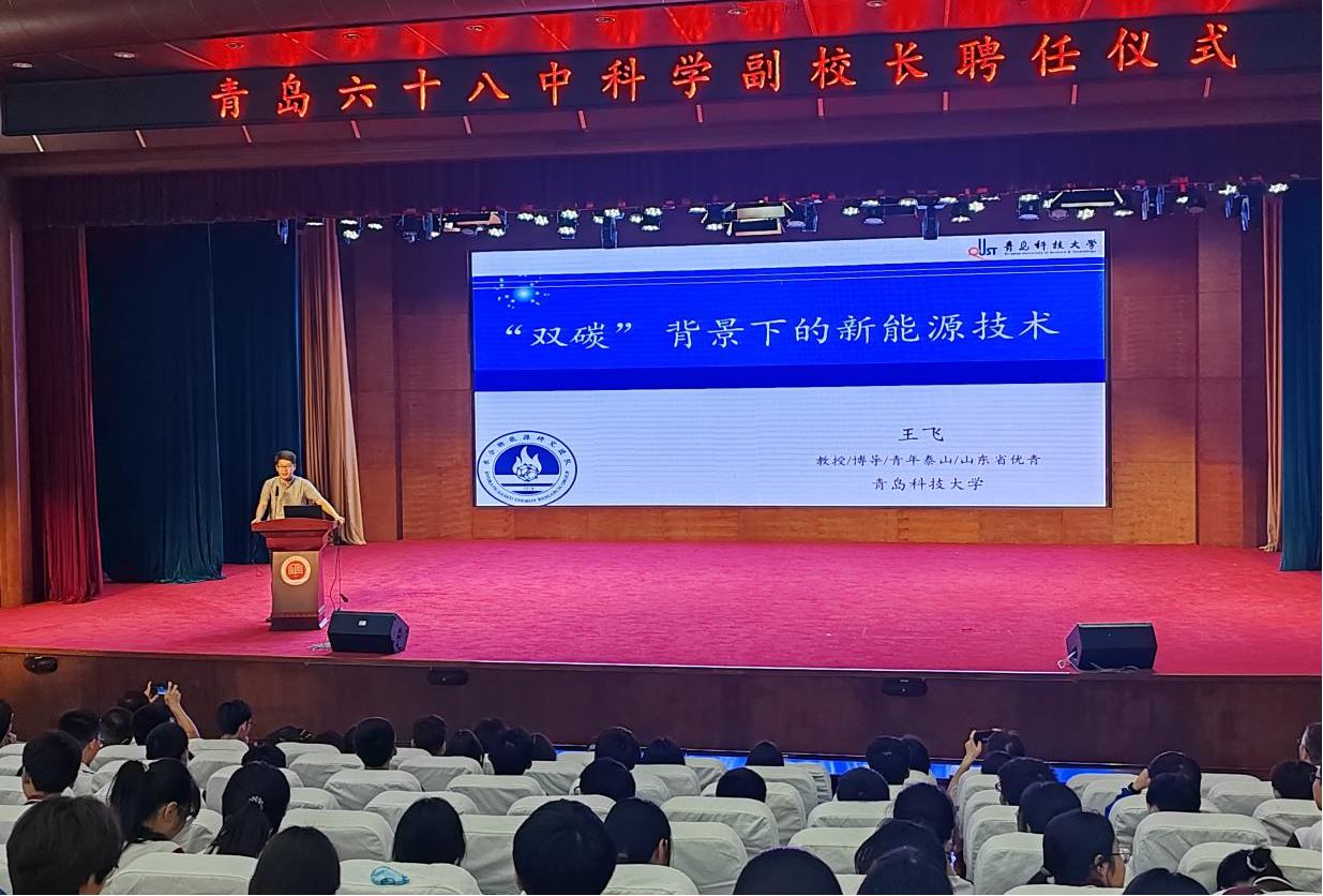王飞教授为太阳成tyc7111cc储能科学与工程系主任,泰山学者青年专家、山东省优青、国际先进材料学会会士,青岛市五一劳动奖章获得者,山东省高等学校青创人才引育计划天然气水合物创新团队带头人。在担任青岛第六十八中学科学副董事长后,他将通过进校园举办科普讲座、报告会,组织或指导现场科普体验活动、科学主题班会、研究性学习项目,指导学校科学教育课程建设、协助开展教师科普培训等方式开展工作,将为附属学校建设高素质教育科研队伍和教育高质量发展贡献青科大机电力量。