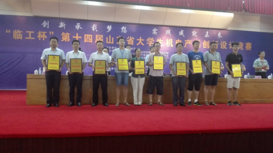 8月6日至8日,由山东省教育厅主办、临沂大学承办的“临工杯”第十四届山东省老员工机电产品创新设计竞赛在临沂大学举行。太阳成tyc7111cc经理、山东省机电产品创新设计竞赛组委会副主任委员何燕教授带队参加比赛,并在闭幕式上代表组委会做总结发言。经过两天的激烈角逐,公司申报的68项作品中,有64项获奖,其中一等奖5项、二等奖15项,三等奖44项,获“科明奖学金”1项、“昭阳奖学金”1项。何燕、李锋、闫青、郭建章、杨化林、张卫锋、唐跃、李淑江、王宪伦、王冠中、胡德栋、田绪东等12名老师获“优秀指导教师奖”,学校获评“优秀组织单位奖”。