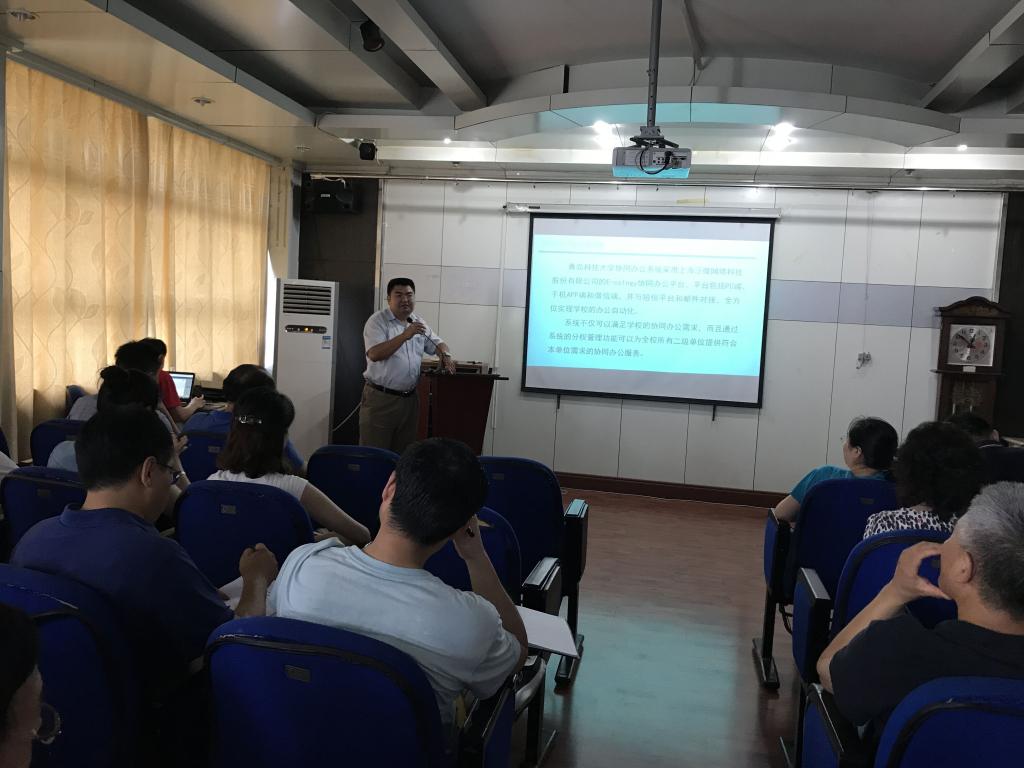 7月11日下午,应学院邀请,财务处处长刘天真携财务处工作人员一行5人和协同办公平台系统(简称OA系统,下同)工程师2人一同来到太阳成tyc7111cc举办培训会,太阳成tyc7111cc全体教职工参加了培训会。