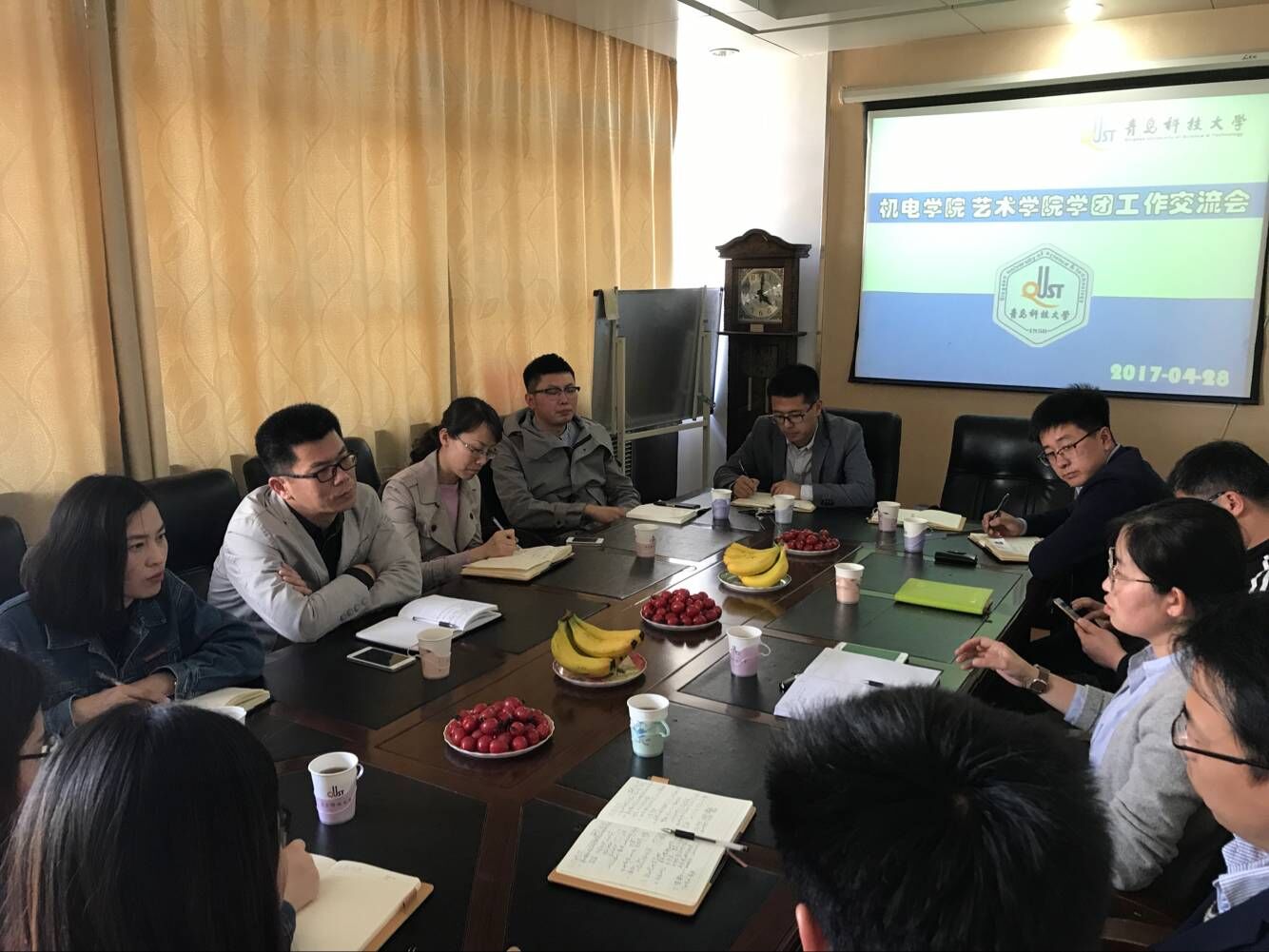 为加强团学工作交流,扎实做好团学工作。4月28日下午,艺术公司党总支副书记兼副经理刘明森及分团委全体专兼职辅导员一行8人到太阳成tyc7111cc进行联系我们交流,公司党总支副书记兼副经理王伟,分团委老师参加了本次交流会。