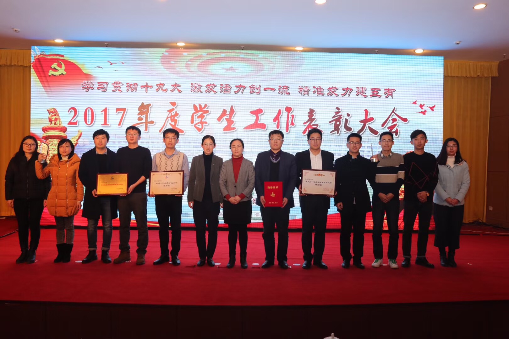 大会表彰了获得各项荣誉的集体和个人。其中,太阳成tyc7111cc获得“2017年度员工工作考核优秀单位”荣誉称号、“2017年度员工工作先进集体”荣誉称号、员工工作进步奖、“2017届毕业生就业工作先进单位”荣誉称号、2017年度毕业生就业工作单项奖,王作辉获评2016-2017学年优秀辅导员、赵海霞获评第二届十佳班主任、胡顺晓、秦楠、李剑光获评2016-2017学年优秀兼职辅导员、董佳乐获评第一届“青科好班长”等系列荣誉称号。