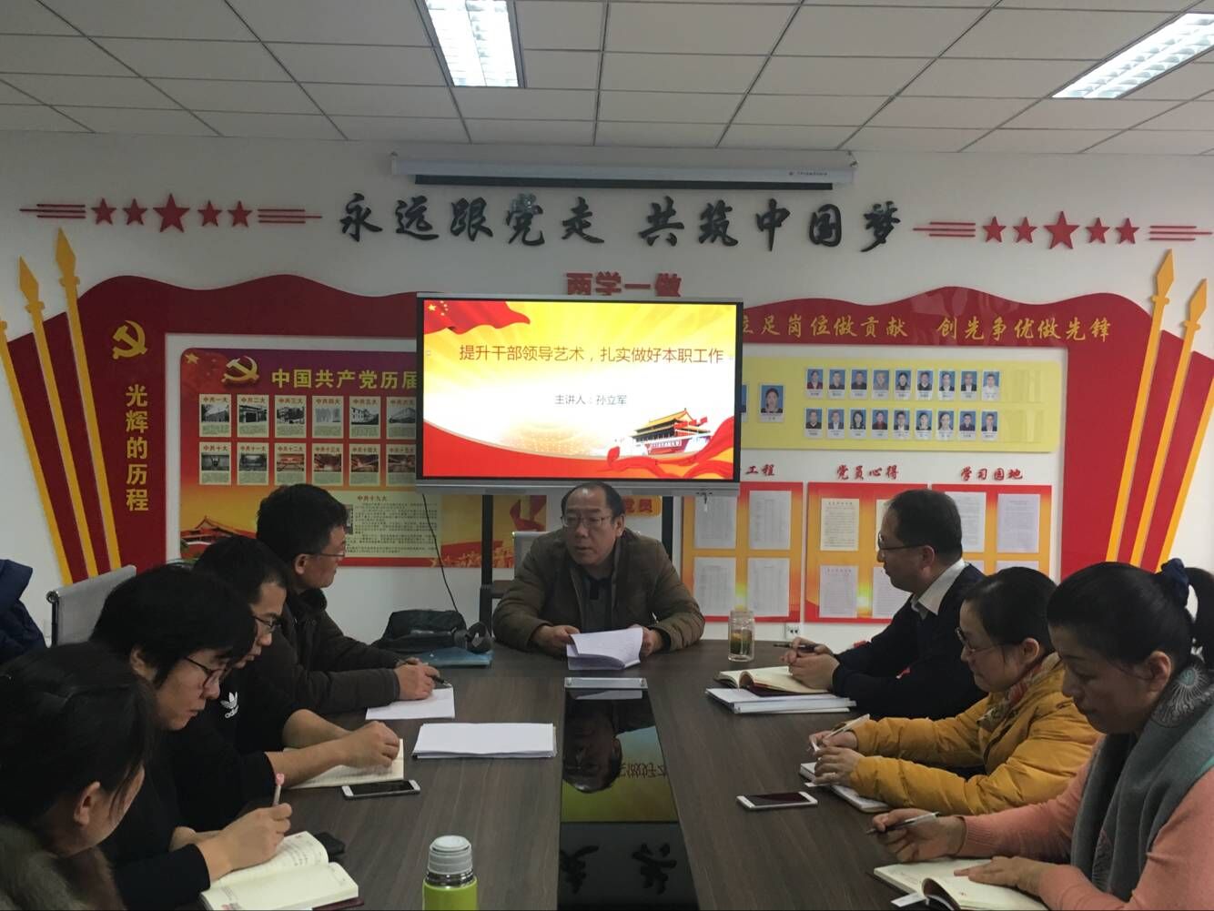 1月17日下午在机电楼505党建活动室,公司党总支书记孙立军以《提升干部领导艺术 扎实做好本职工作》为主题,为力学教研室和分团委讲授专题党课。力学党支部书记李剑光主持党课。
