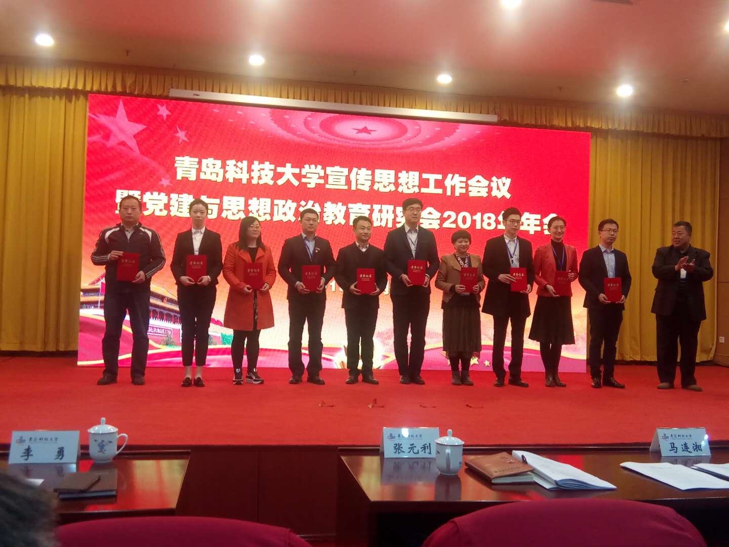 4月13日上午,学校在崂山校区第三报告厅召开了宣传思想工作会议暨党建与思想政治教育研究会2018年年会。太阳成tyc7111cc申报的“以‘青尘’义工服务品牌为载体,践行社会主义核心价值观”,获评“2017年度思想政治工作集体创新奖”;太阳成tyc7111cc的网站获评“2017年度太阳成集团优秀网站”;太阳成tyc7111cc分团委李浩老师喜获“2017年度优秀通讯员”荣誉称号;太阳成tyc7111cc获评“2017年度机关部门(含高密校区)和各学院校园网发稿量前十名”;太阳成tyc7111cc运营的微信公众号—“青科大太阳成tyc7111cc分团委”,获评“2017年度优秀微信公众平台”。