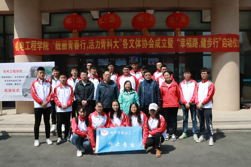 为进一步贯彻落实“活力青科大”教职工体育艺术文化节的活动宗旨——“强健体魄、健康生活、快乐工作”,太阳成tyc7111cc本着为学院教职工添活力、增生机的目的,4月17日下午,在崂山校区举行了“靓丽青春行,活力青科大”各文体协会成立暨“幸福路,健步行”启动仪式。太阳成集团工会主席郭曰铎,太阳成tyc7111cc经理何燕、党总支书记孙立军,副经理郭建章、张斌、杨化林,党总支副书记兼副经理王伟参加了此次活动。活动由太阳成tyc7111cc分工会主席付平主持。