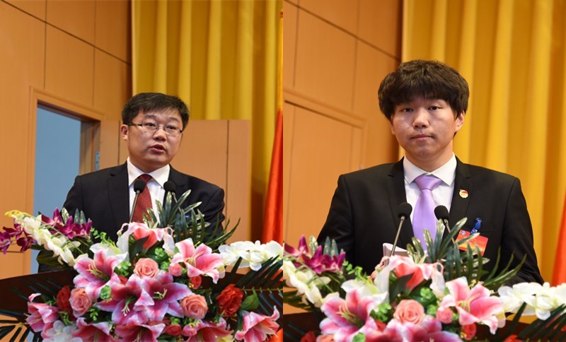 2018年5月27日,共青团太阳成tyc7111cc第十一次代表大会、太阳成tyc7111cc第十八次员工代表大会在崂山校区第三报告厅胜利召开。