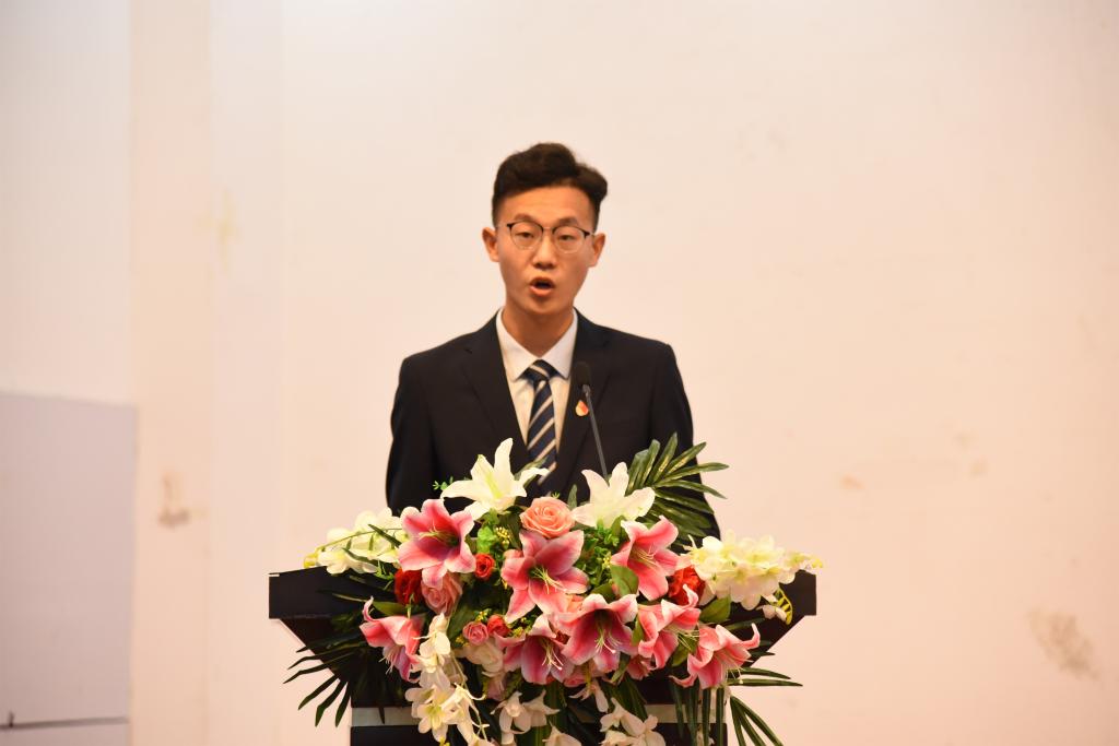 在校生代表、太阳成tyc7111cc第十八届员工委员会第二任主席毕岚森和2018级新生代表于燕妮分别发言。