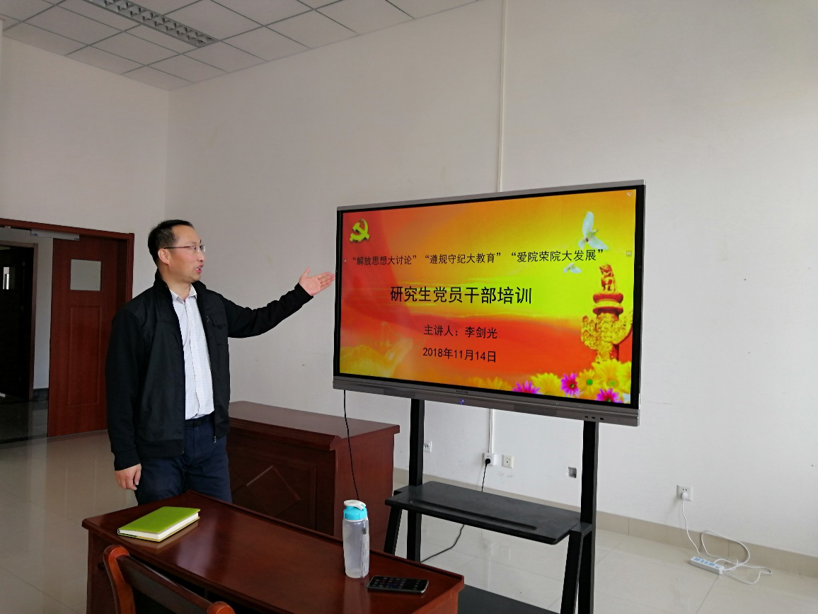 11月14日上午10:10,太阳成tyc7111cc研究生党员、员工干部培训会议在崂山校区机电楼529会议室举行。学院研究生辅导员李剑光老师、曹科伟老师,研究生党员、各年级班委以及院研究生会成员参加了会议。