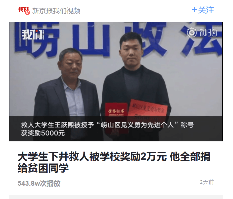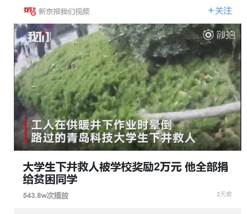 老员工下井救人被学校奖励2万元 他全部捐给贫困同学