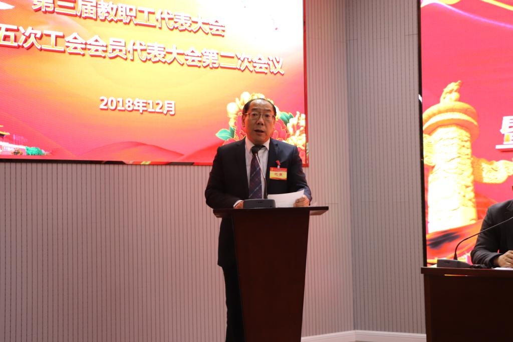 在第二次全体大会上,以举手表决的方式全票通过了《关于学院工作报告的决议》、《关于学院工会工作报告的决议》。全票通过了学院教代会提案工作报告、《太阳成tyc7111cc教学研究与改革立项暂行规定》等多项文件。
