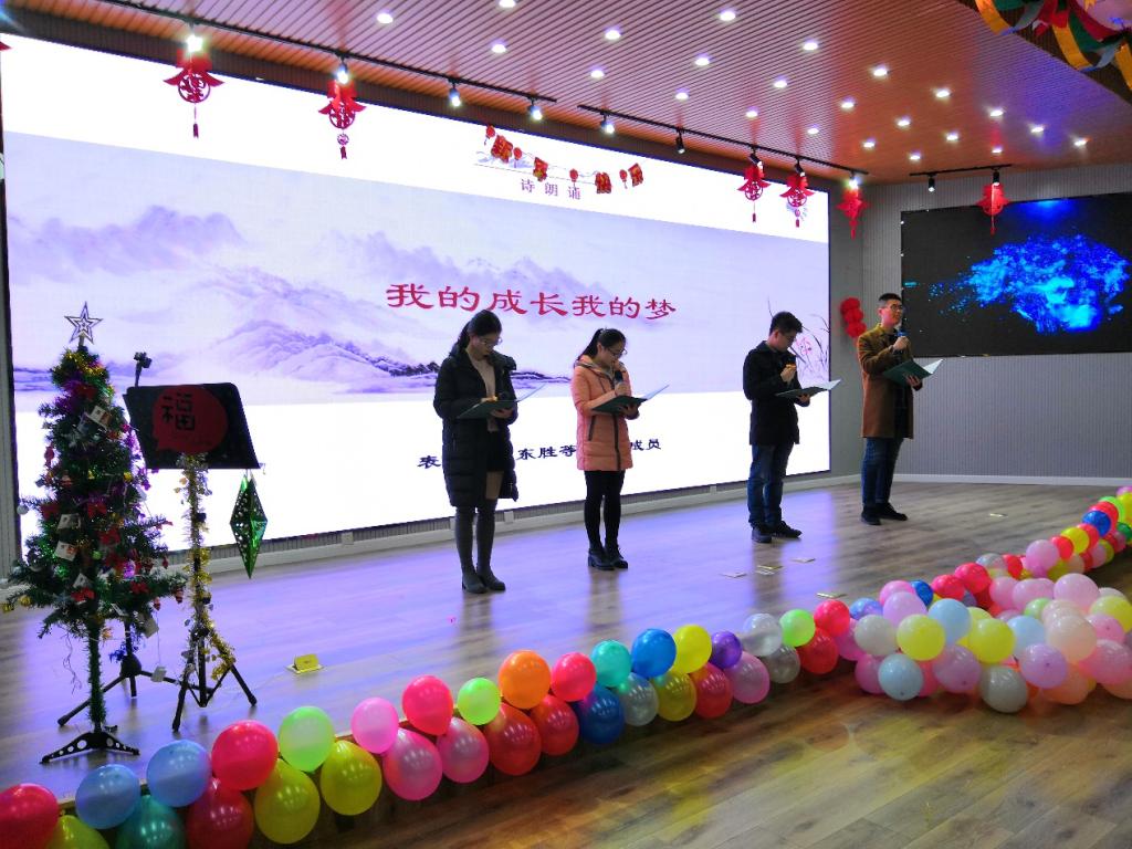晚会以青春回忆为主旋律,表演者们为在场观众们献上了一场视觉与听觉的饕餮盛宴。整场汇演由舞蹈、小品、诗朗诵、歌曲等13个节目组成,在表演过程中穿插了趣味十足的游戏环节。游戏互动环节拉近了同学们之间的距离,充分调动了现场的气氛,现场笑声不断。元旦晚会在老师们活力迸发的舞蹈《海草》中拉开序幕。诗朗诵《改革开放四十周年》、《我的成长我的梦》带着我们重温祖国改革开放40年艰辛历程,领会改革开放精神,激励着我们要做一名新时代研究生,为党和国家贡献自己的力量。小品《面试》展现了一个诙谐幽默的面试场景,欢声笑料不断。孙书记与付老师对唱的《天籁传奇》引起阵阵掌声,点燃了现场气氛。歌曲《今天是你的生日,妈妈》表达了在外求学游子对母亲的深切思念和祝福。《带你去旅行》、《Take me to your heart》、《如果没有你》、《双子》等歌曲余音袅袅、声动梁尘,展现了公司研究生的风采。杯子舞《Cups》和吉他弹唱《姑娘》惊艳了众人。多种多样的节目形式,精彩纷呈的演绎赢得了观众的阵阵掌声和欢呼声,让现场观众们沉浸在这节日欢庆的氛围里。