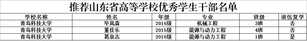 在近日公布的2018年度山东省学校优秀员工优秀员工干部和先进班集体名单中,公司刘东喜、张旭、刘冰桀、范世缘同学被确定为山东省高等学校优秀员工,毕岚森、董佳乐、葛泉志被确定为山东省高等学校优秀员工干部,机械实验161班被确定为山东省高等学校先进班集体。