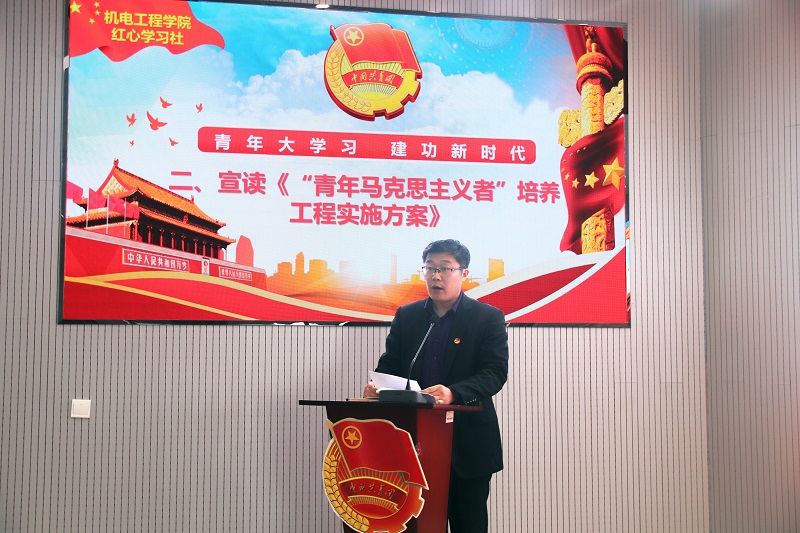 为深入贯彻落实习近平新时代中国特色社会主义思想和党的十九大精神、团的十八大精神,值此中华人民共和国成立70周年、五四运动100周年之际,4月23日下午,2019年“青马工程”开班仪式在机电楼530会议室举行。机电工程公司党总支书记孙立军、马克思主义学院马克思主义理论研究中心主任杜裕禄、分团委辅导员及全体学员出席本次会议,会议由分团委书记王作辉主持。
