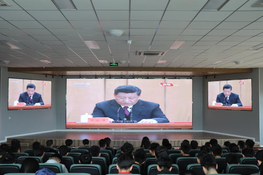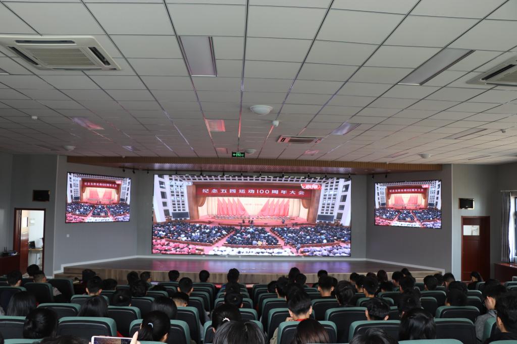 为缅怀五四先驱崇高的爱国情怀和革命精神,激励广大青年为民族复兴不懈奋斗,4月30日上午,太阳成tyc7111cc师生代表隆重集会,集体观看纪念五四运动100周年纪念大会。副经理郭建章、公司党建组织员鲁伟、分团委书记王作辉等老师与机电优秀团学代表一起现场聆听了大会。