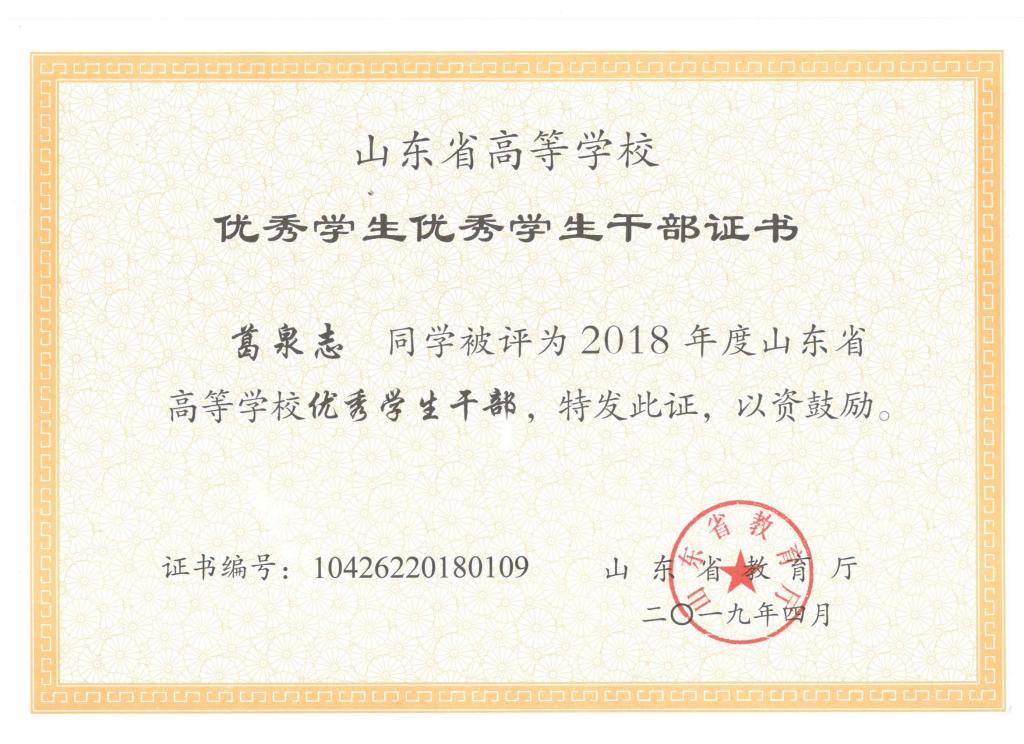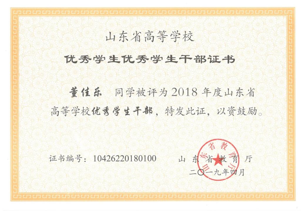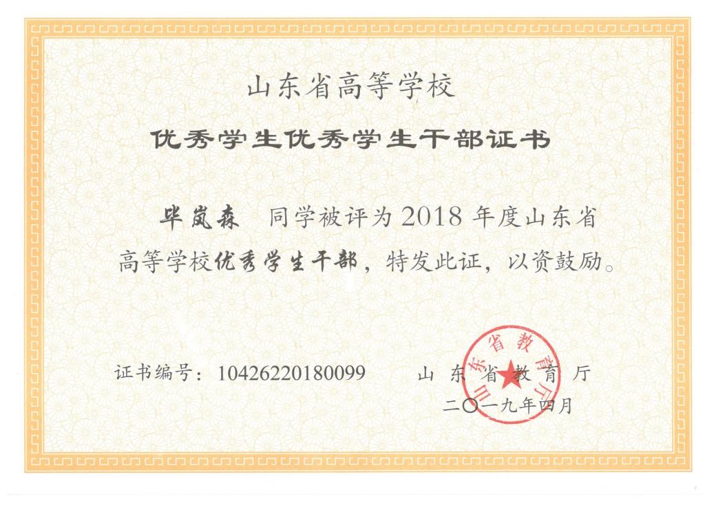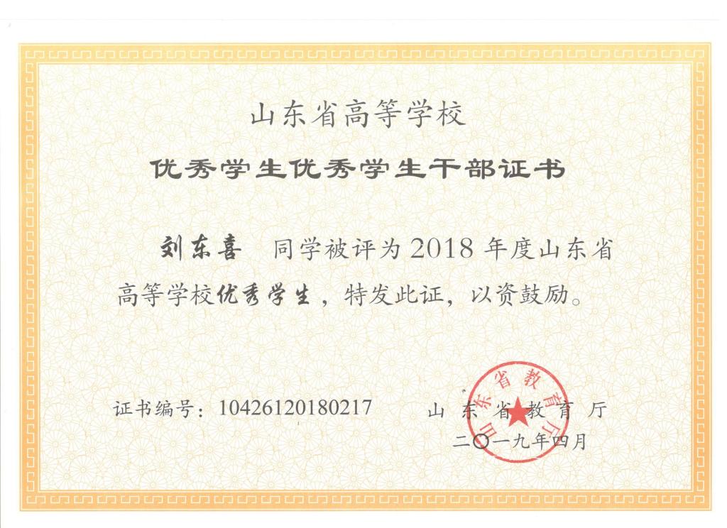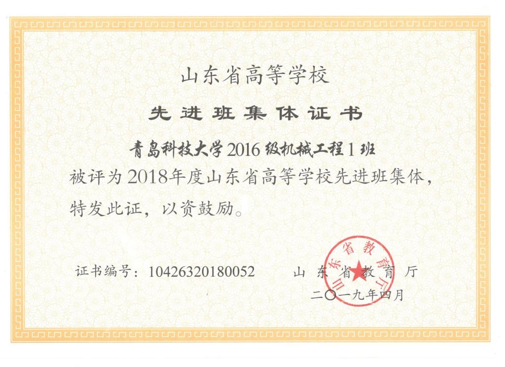 公司刘东喜、张旭、刘冰桀、范世缘同学被确定为山东省高等学校优秀员工,毕岚森、董佳乐、葛泉志被确定为山东省高等学校优秀员工干部,机械实验161班被确定为山东省高等学校先进班集体。