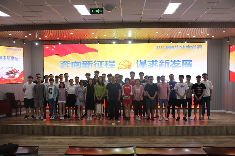 孙立军为全体毕业生党员做了《奔向新征程 谋求新发展》的专题党课。他指出要认清形势、提高站位,正确把握发展环境与现状;要解放思想、树立信心,增强发展动力,不断学习,解决能力恐慌;要优化路径、加快发展,努力成才;要抢抓机遇、用好资源,实现协调发展。最后,他讲到,各位党员即将离校成为社会栋梁,希望大家在未来生活工作中,大展宏图、扬帆远航!