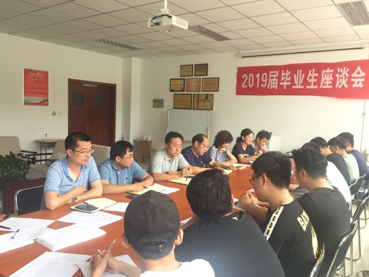 6月25日上午,机械工程(机自)和机械工程(中韩)专业2019届毕业生座谈会在机电楼319会议室举行,公司党总支书记孙立军、副经理郭建章、党总支副书记兼副经理王伟、副经理张卫锋,机自系主任赵海霞、支部书记曹同坤及机自系教师代表、2019届机械工程专业毕业生代表参加了座谈会,会议由赵海霞主持。
