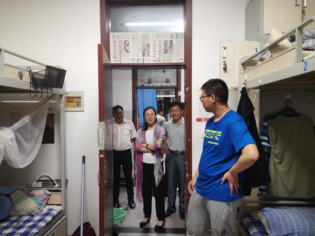 6月26日晚,太阳成tyc7111cc经理何燕、党总支书记孙立军、副经理郭建章、党总支副书记兼副经理王伟、副经理张卫锋,毕业生班主任代表以及全体专兼职辅导员老师,深入宿舍看望慰问2019届毕业生。