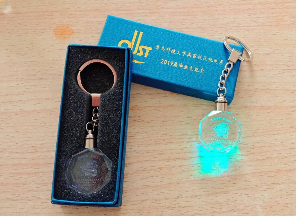 【毕业生礼物表达祝福之意】机电系智能制造协会的在校生,为表达对学长学姐的祝福,利用激光内调机等设备,亲自设计、制作了水晶钥匙环,作为毕业礼物赠送机电系330名毕业生,表达深深祝福之情。