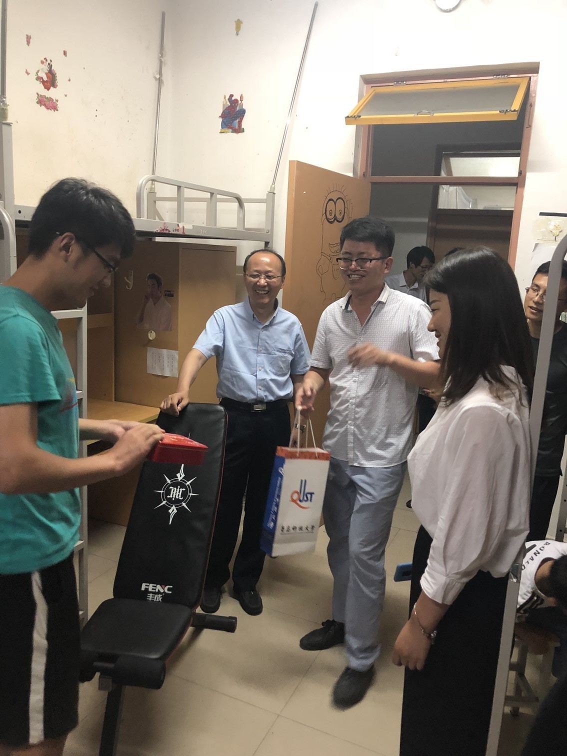 【师生话别尽显温馨之情】6月26日晚,机电系系主任杨化林,毕业生辅导员、班主任走进员工宿舍,关心毕业生工作、毕业手续办理等相关情况,表达对毕业生的祝福。毕业生来到梧桐学舍表达对老师的感谢,对母校的眷恋之情,所有老师在梧桐学学舍至深夜,与毕业生一起度过科大的最后一晚。