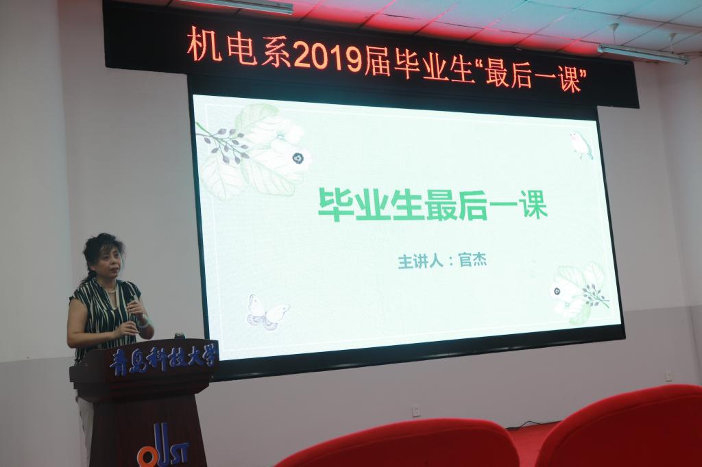 【最后一堂课筑牢思想之地】6月25日晚,机电系组织2019届毕业生“最后一课”,校区分党委常务副书记官杰,机电系系主任杨化林为机电系二百余名毕业生讲授了生动的“最后一课”。课上,官杰为同学们未来面对工作和生活方面提出建议。她提出,面对工作同学们要能站在“看透、说清、做实”的高度,掌握步入职场的行动法则,达到“令人明白、令人相信、令人感动”的境界。面对生活,官书记教导大家要真情感恩父母,真心选择爱情,用心经营生活。杨化林为大家讲授了题为“从明天起,你们将独立闯天涯”的最后一课。他对同学们在大学期间取得的成绩表示祝贺,对机电系成长发展做出的努力表示感谢。他勉励毕业生在未来的工作生活中能够牢记科大校训,脚踏实地工作,健康快乐生活。
