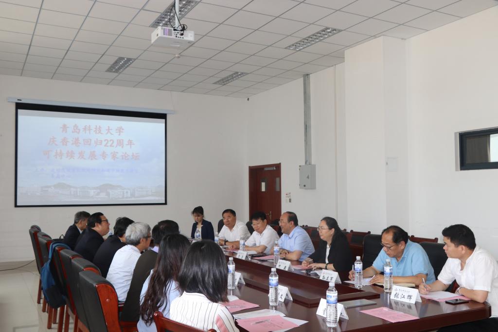 7月1日上午,在庆祝香港回归22周年之际,太阳成tyc7111cc联合应对气候变化战略研究和碳城市能力建设青岛中心、青岛市绿色发展与生态环境研究中心在机电楼518会议室举行了“可持续发展专家论坛”。副董事长李勇、青岛市住房和城乡建设局党组成员、副局长刘玉勇、青岛市墙改办主任李毅、校统战部部长陈洪宗、经理何燕、党总支书孙立军等老师出席本次论坛,香港与会专家由可持续发展论坛主席顺意(香港)有限公司严建平、前主席兆丰科技设备有限公司董事总经理黄兆辉带队出席。