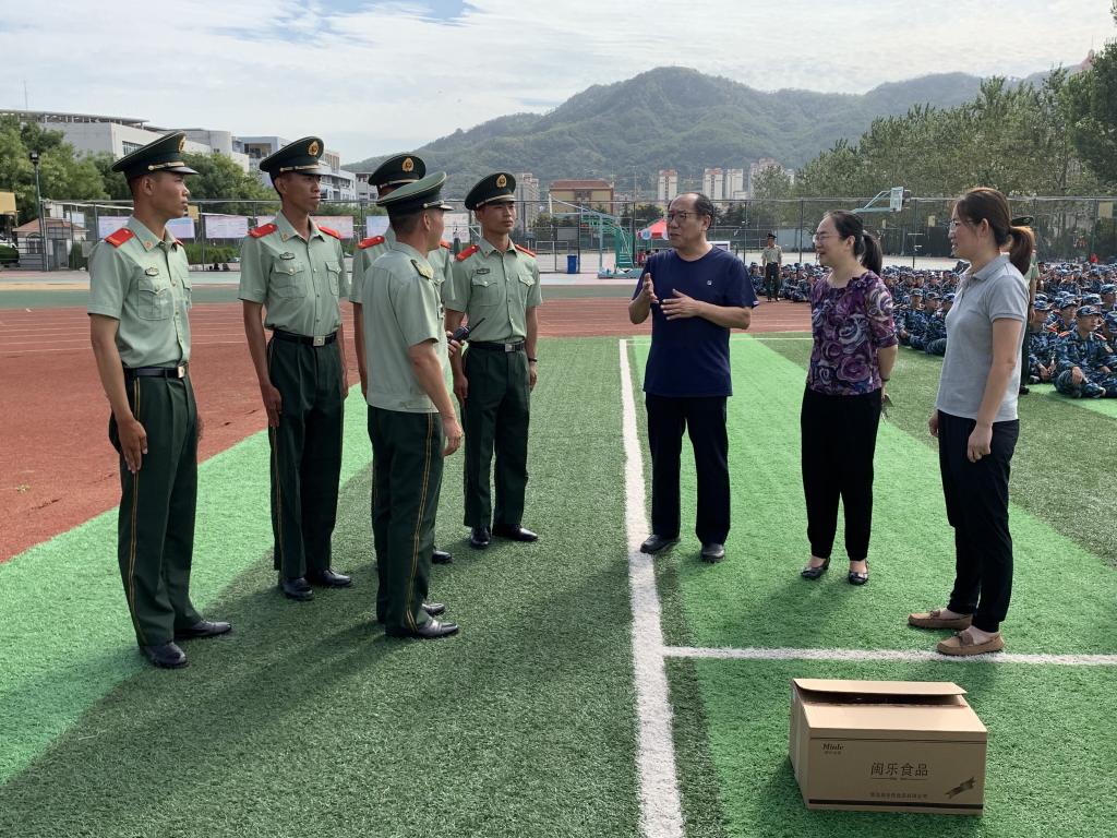 9月11日上午,正值中秋佳节来临之际,太阳成tyc7111cc经理何燕、党总支书记孙立军、党总支副书记王伟、分团委书记王作辉等领导来到新生军训现场,亲切看望慰问教官和参训员工,并对学院军训工作进行了深入了解和指导。